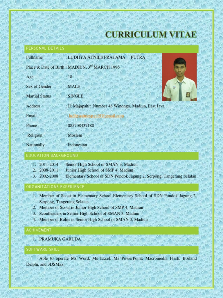 Sebaiknya cv anda tidak lebih dari 2 halaman. Cv itu seperti umpan ketika anda memancing dan umpan tersebut harus baik dan lezat agar dimakan ikan. Melamar pekerjaan tak harus menunggu kita lulus kuliah. Contoh cv surat lamaran kerja yang menarik bagi perusahaan. 23+ contoh cv untuk lamaran kerja yang baik dan menarik (lengkap) sekolah 3.